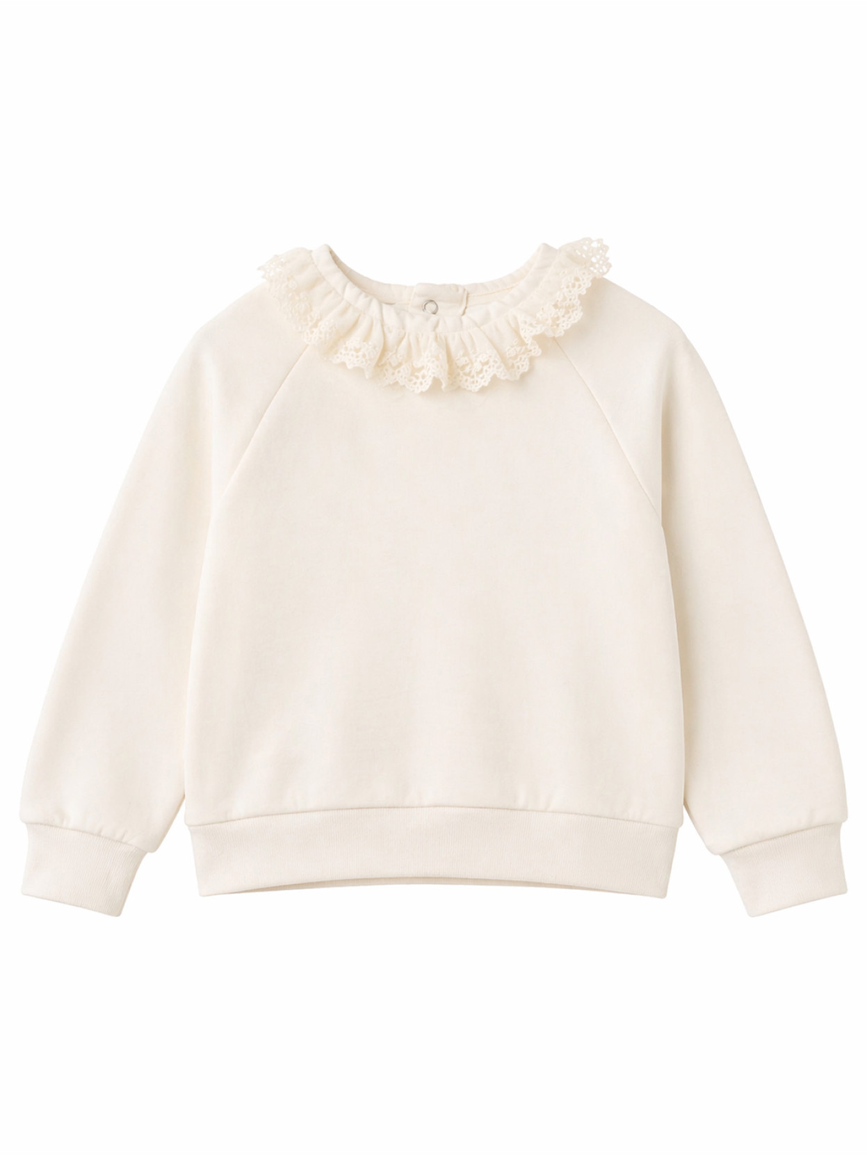 Este modelo se destaca por su diseño delicado, con un cuellito de puntilla que suma un detalle dulce y elegante. Además, cuenta con elástico en los puños para un mejor ajuste y dos broches metálicos en el cuello que facilitan el cambio, haciendo que el buzo de niña Malena sea práctico y funcional.