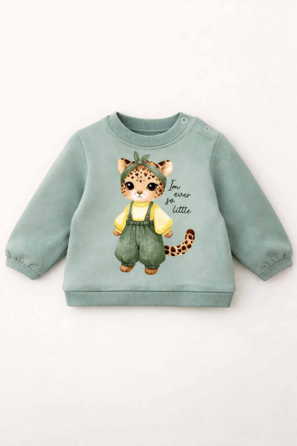 Este modelo de beba, realizado en frisa de algodón de calidad premium, se destaca por sus delicadas estampas de animales que le aportan un estilo tierno y divertido. Además, cuenta con un broche metálico en el cuello que facilita su colocación, brindando practicidad sin perder estética.