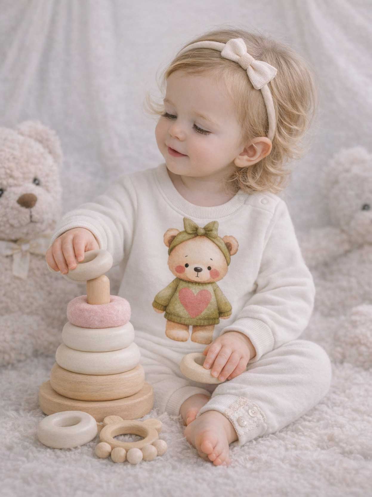 Buzo de beba modelo Lucrecia, confeccionado en suave frisa de algodón calidad premium.