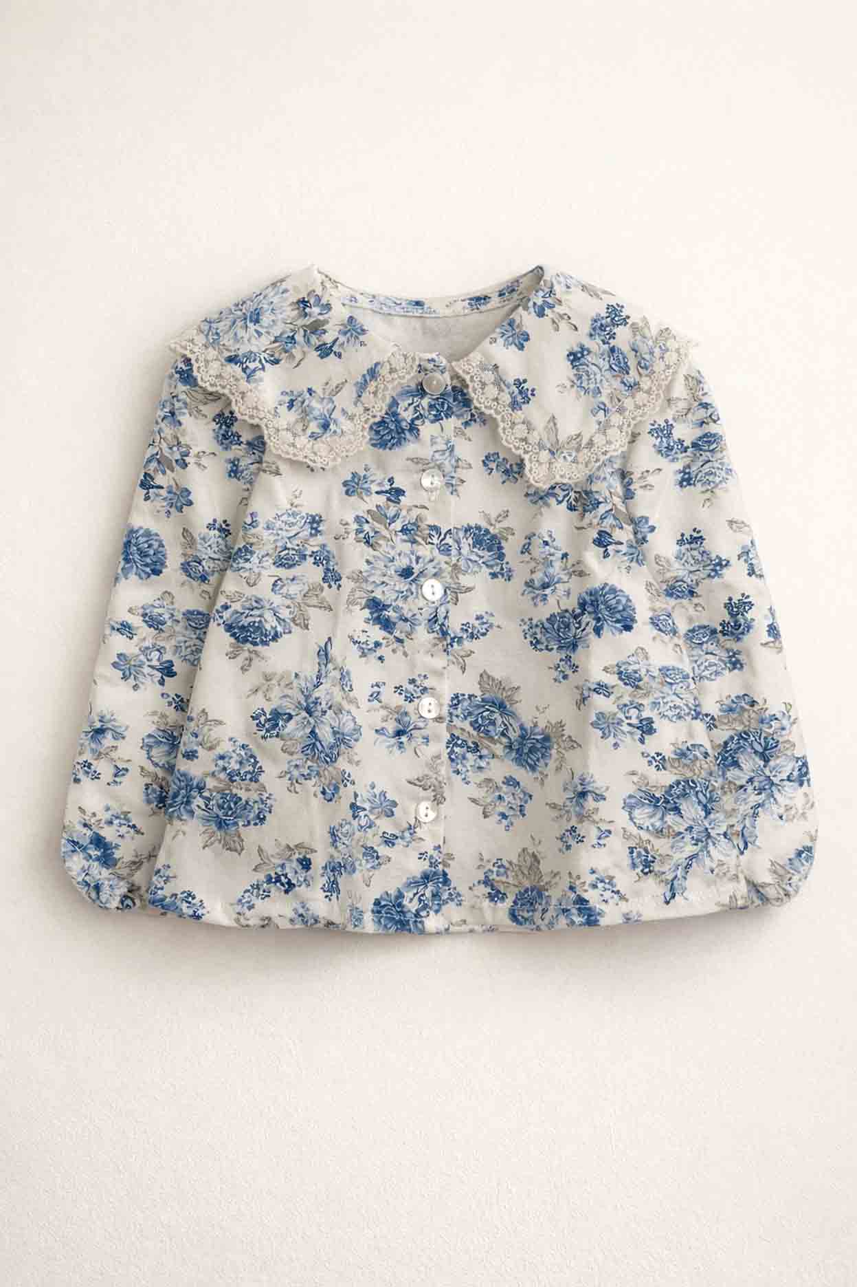 Este modelo cuenta con botones blancos perlados que facilitan su colocación. Presenta elástico en los puños para un mejor ajuste y detalle de puntilla de tul de algodón en el cuello, que aporta un toque femenino y delicado a la prenda.