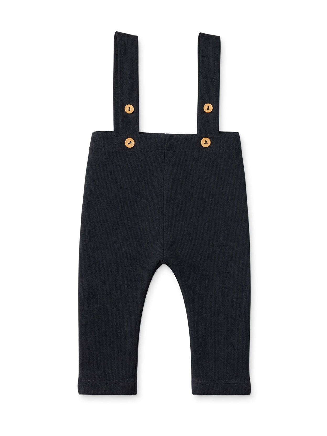 Pantalón de bebé modelo Romeo, confeccionado en suave morley de algodón de calidad premium, con tiradores y botones simil madera que aportan un estilo clásico y encantador a la prenda.