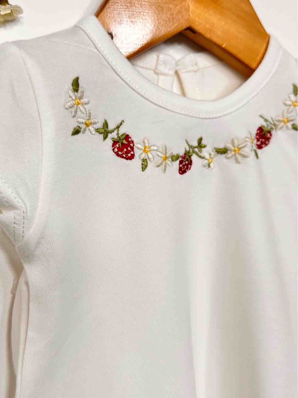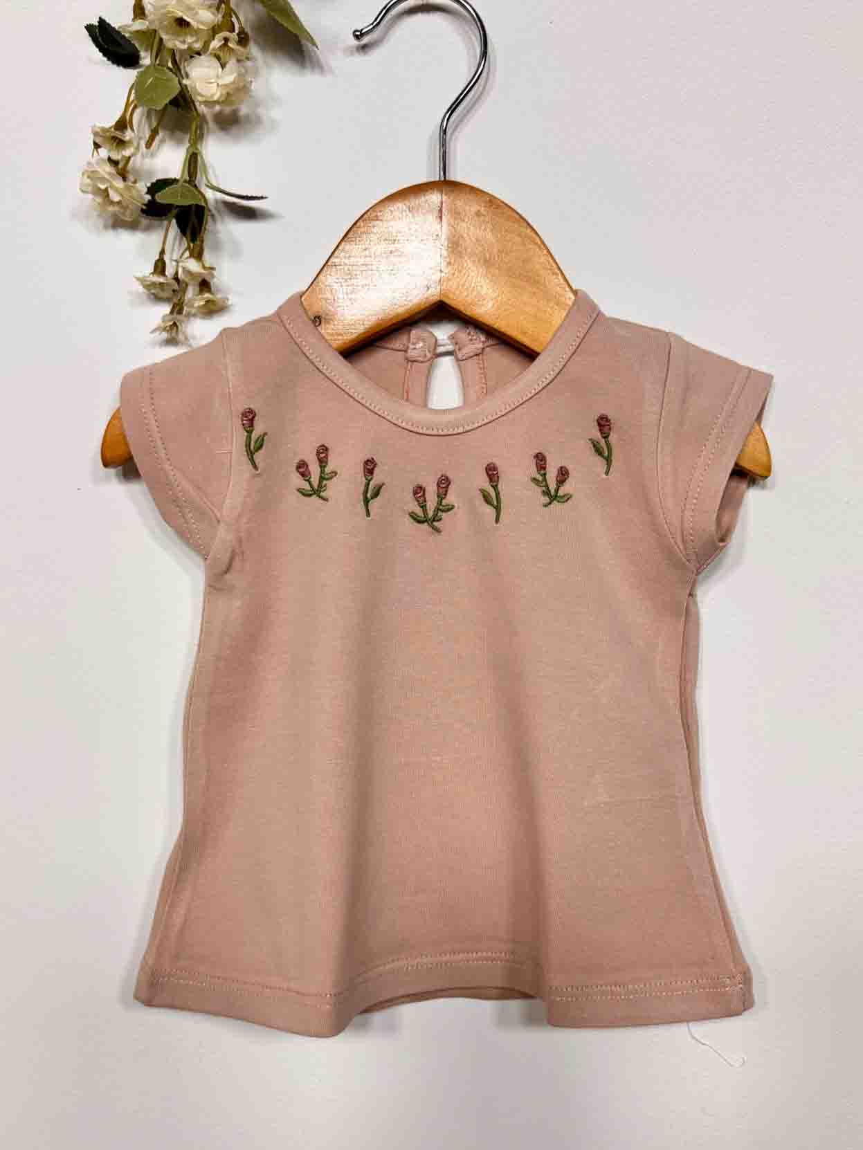 Remera de beba modelo Lucila, confeccionada en suave jersey de algodón elastizado, con bordado, calidad premium