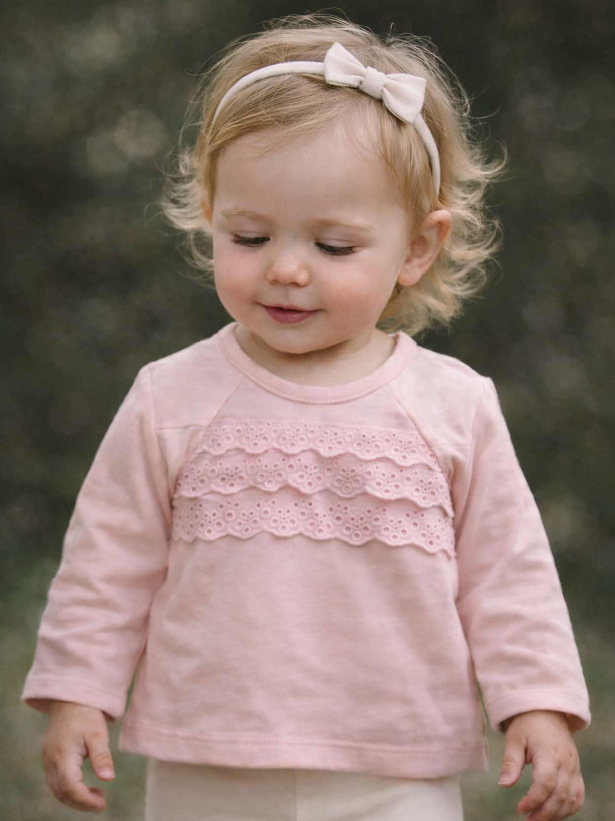 Su tela es extra suave y resistente, ideal para cuidar la piel sensible de tu beba y brindarle comodidad durante todo el día. En el centro lleva 3 volados en broderie bordado que aportan un detalle romántico y delicado, y en la espalda un botón blanco perlado con apertura estilo gota que facilita el cambio.