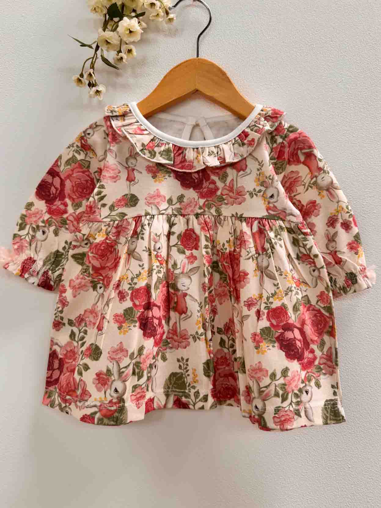 Confeccionado en suave jersey de algodón elastizado calidad premium, brinda comodidad y libertad de movimiento durante todo el día. Sus detalles en el cuello y los moños de tull lo convierten en una prenda dulce y especial.